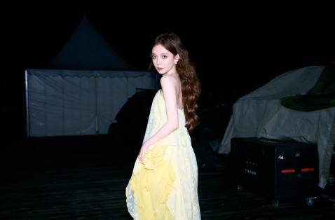 汪小敏演唱会舞台妆造:淡黄长裙,蓬松头发!